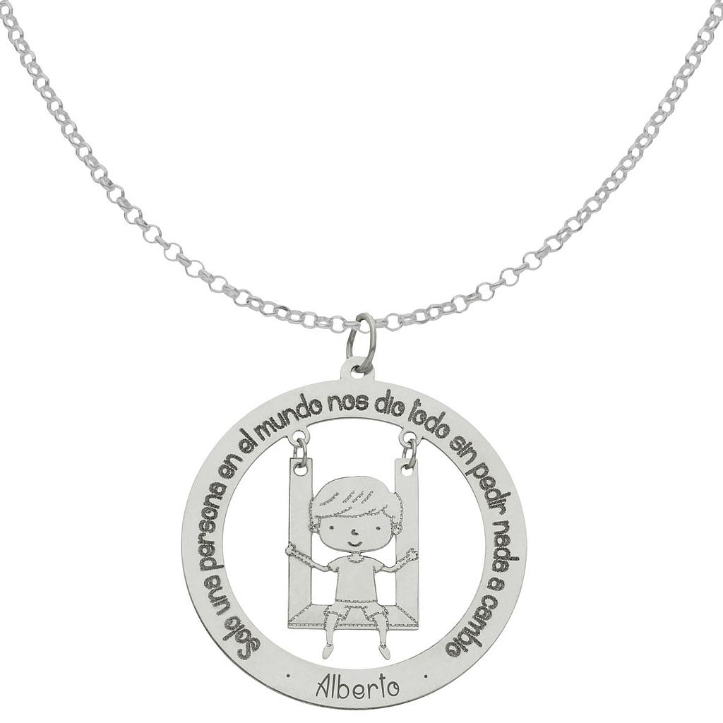 GARGANTILLA FRASE+NIÑO ORO BLANCO 18KL - 28MM