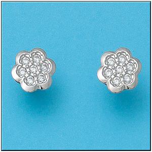 PENDIENTES FLOR EN ORO BLANCO 18KL