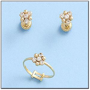 PENDIENTES BEBE FLOR EN ORO DE 18KL